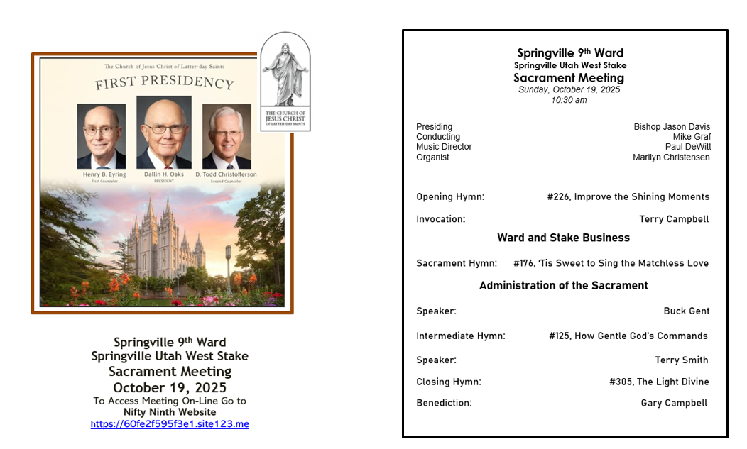 Read More2024/2025 Ward mission plan for the Springville 9th ward.
